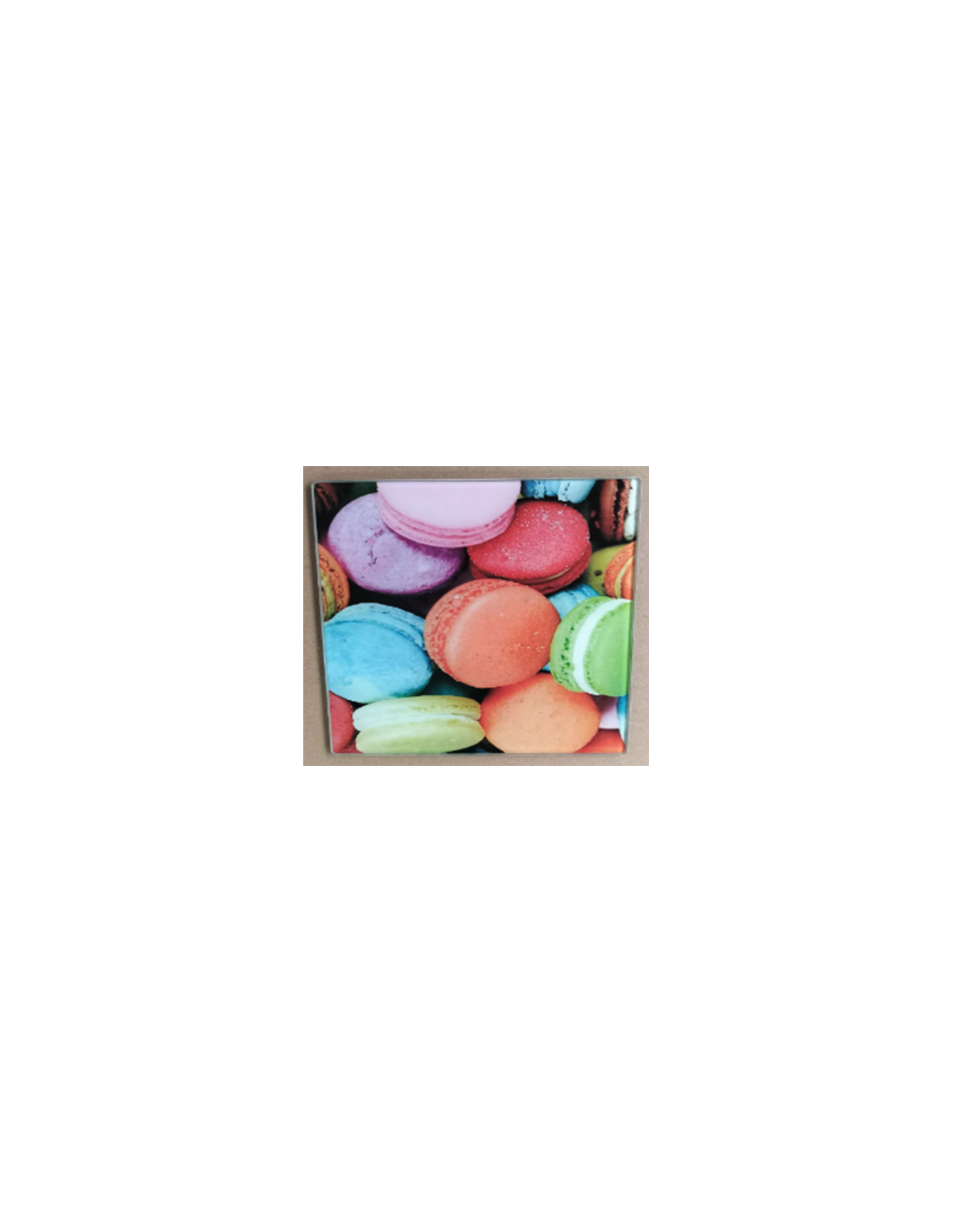Protégez votre table avec ce Dessous de Plat en Verre "Macaron", alliant utilité et décoration. Ce support résistant à la chaleur est idéal pour poser vos plats chauds en toute sécurité, tout en ajoutant une note gourmande et colorée à votre cuisine ou votre table de salle à manger grâce à son motif de macarons.
