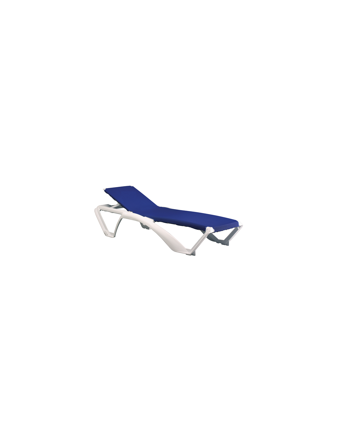 Chaise longue empilable avec structure en polypropylène et fibre de verre.