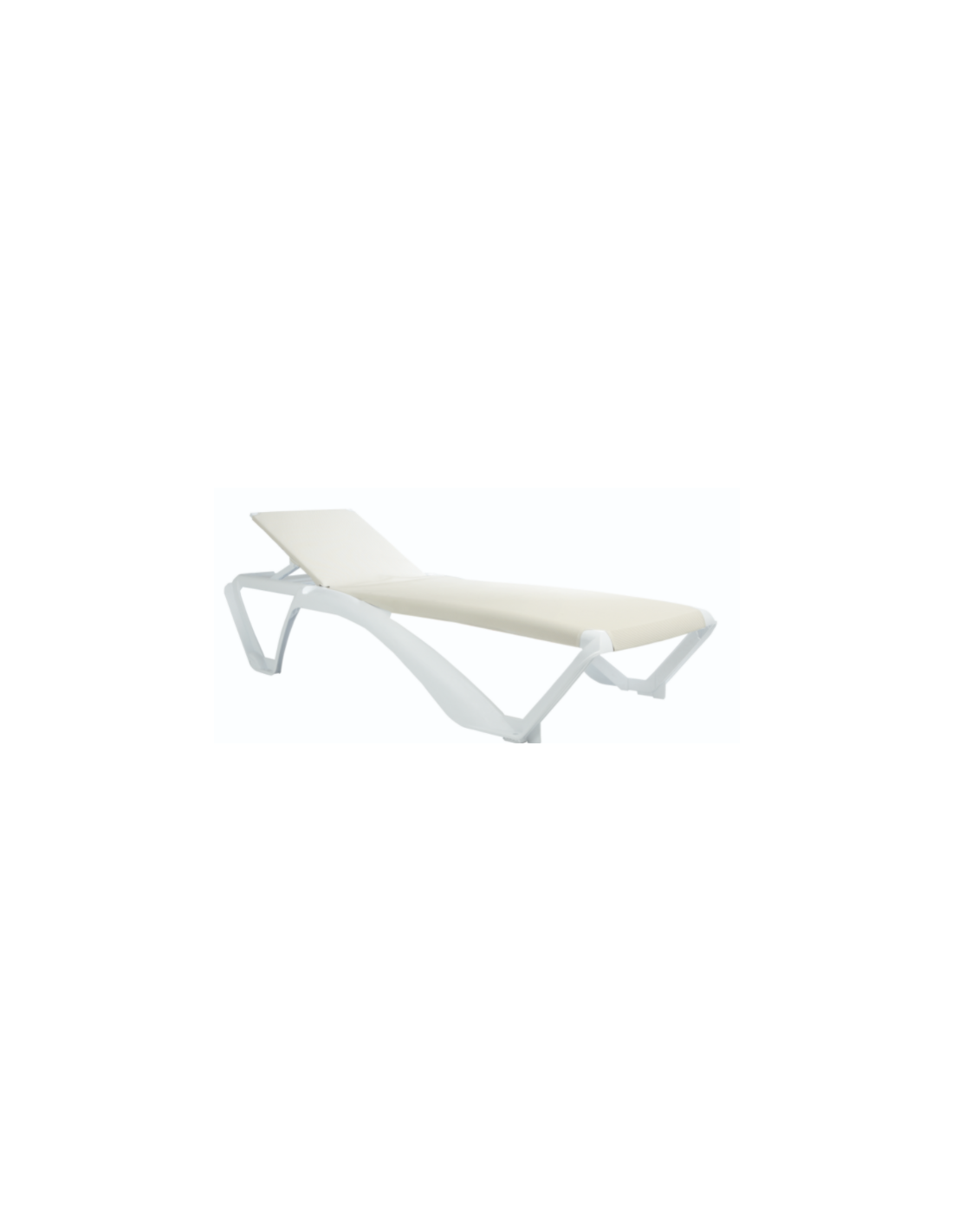 Chaise longue empilable avec structure en polypropylene et fibre de verre.