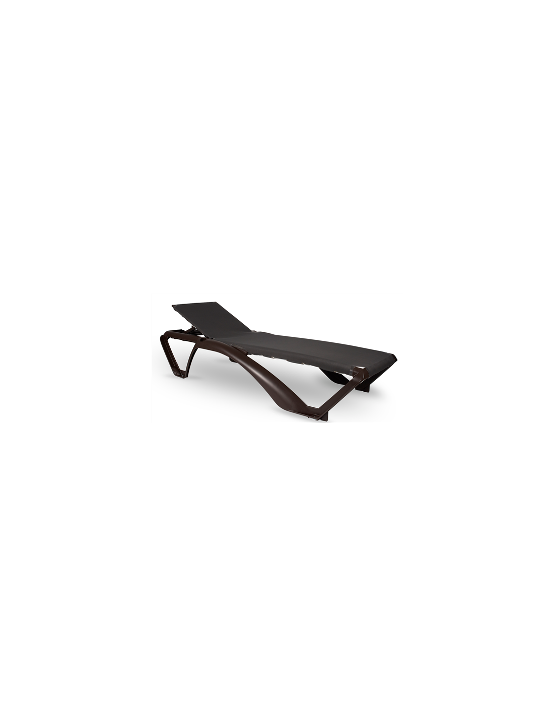 Chaise longue empilable avec structure en polypropylène et fibre de verre.
