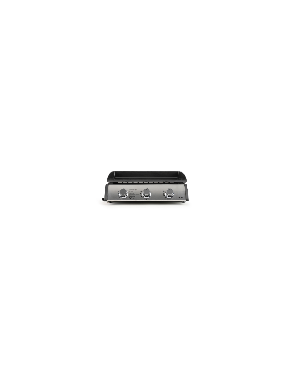 Plancha gaz, convient pour 10 à 12 personnes, Plaque de cuisson 61 x 38 cm en fonte émaillée, 3 brûleurs inox 7500 W, Caisson acier et inox, Gaz butane et propane, Récupérateur de graisse,