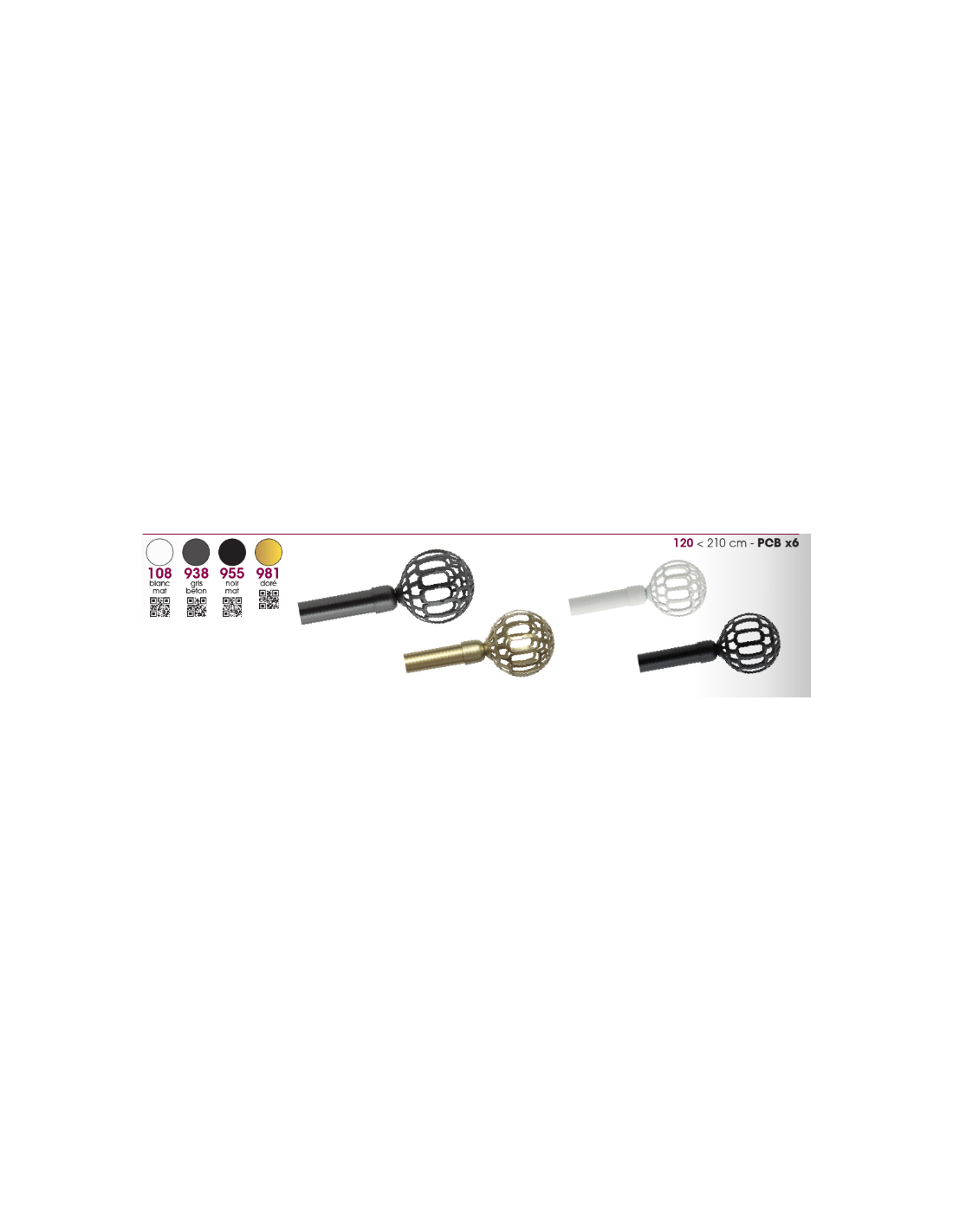 Kit embout + barre extensible 1.2 à 2.10 m + 2 supports simple.