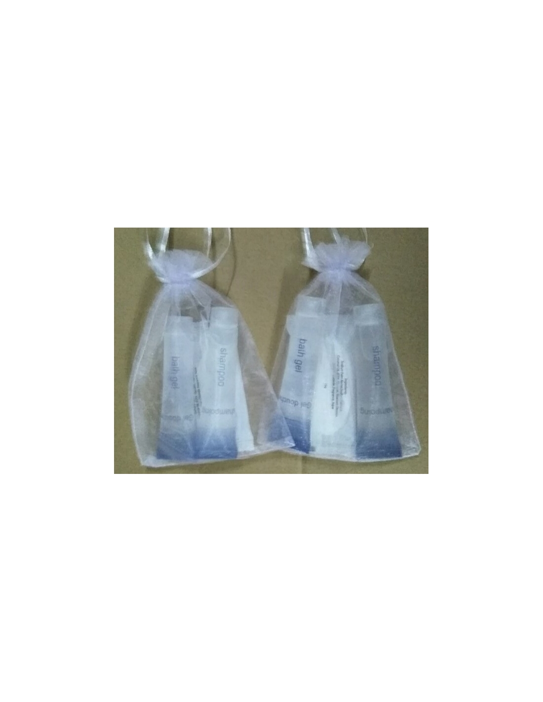 Ajoutez ce kit de salle de bain en sac blanc Organza à votre équipement. Pratique et élégant, il contient les essentiels pour l’hygiène personnelle lors de séjours ou à domicile.