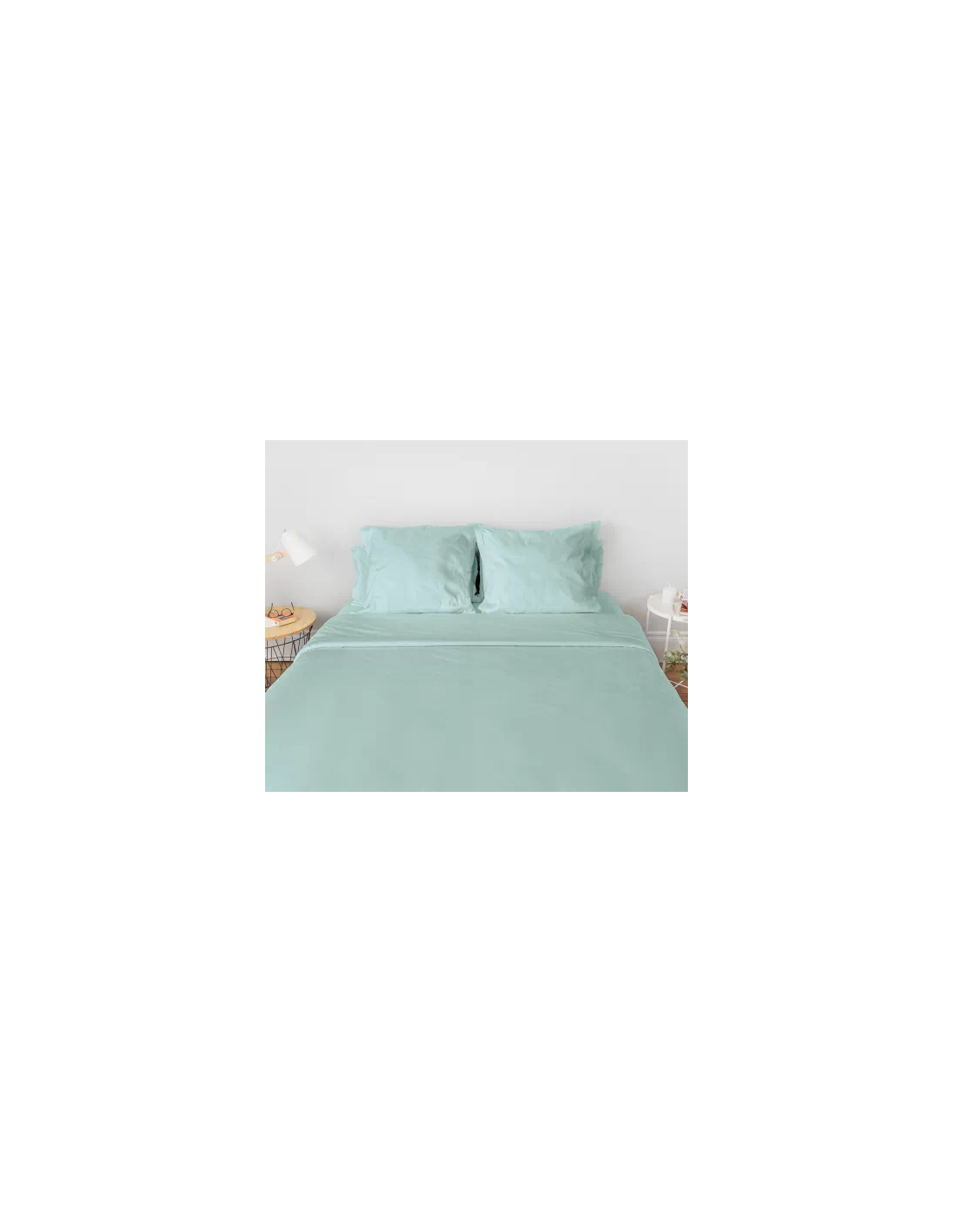 Housse couette, sac, sans rabat, passe main, montage bourdon réversible coton polyester retombé 40cm.