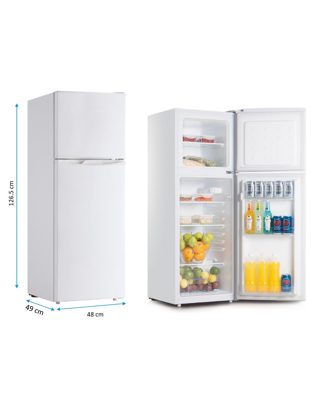 Ajoutez ce réfrigérateur combiné à votre équipement. Compact et pratique, il offre un rangement efficace pour tous vos aliments.