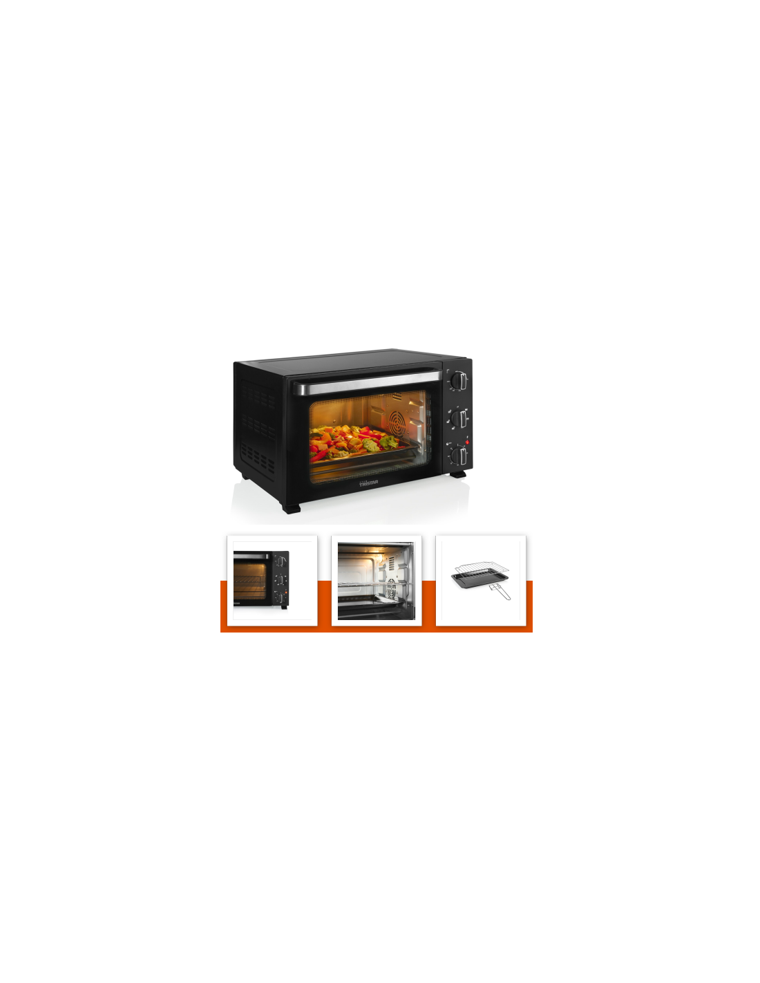 Ce four à convection, d'une capacité de 38L, est idéal pour faire cuire, griller et toaster. Il est équipé de 6 réglages de chaleur. Muni d'une minuterie 90 min, éclairage intérieur, plaque de cuisson, grill et poignée pratique.