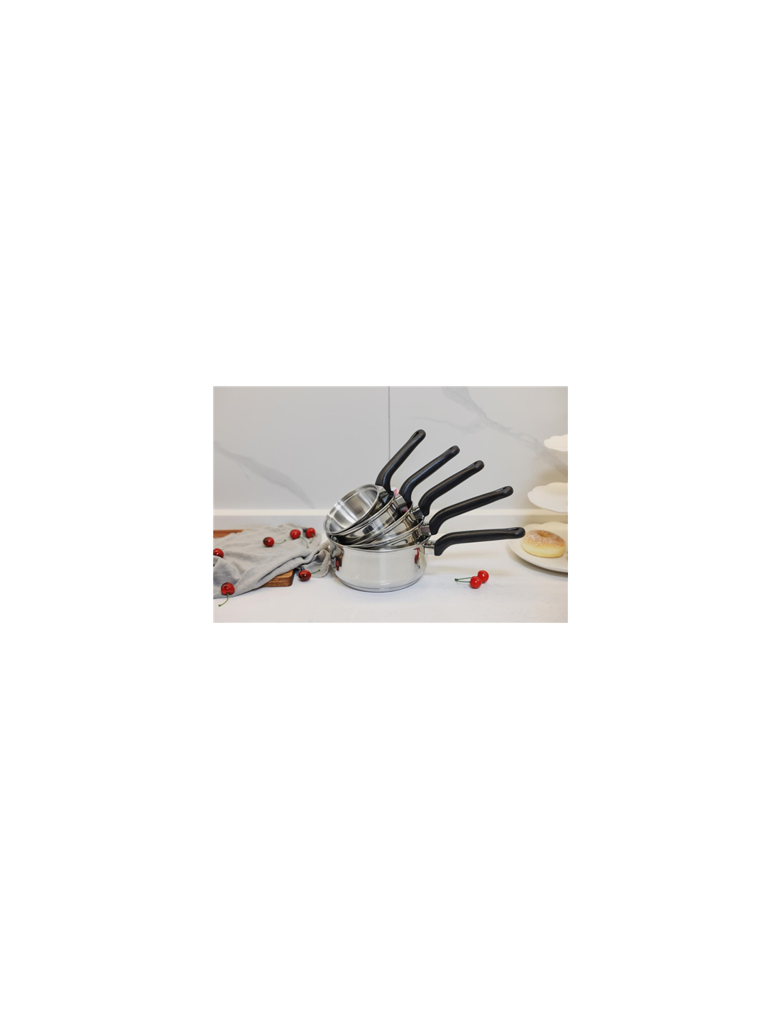 Ajoutez cet Ensemble de 5 Casseroles en Acier Inoxydable Tous Feux à votre batterie de cuisine. Ce set complet est conçu pour l'efficacité et la durabilité, avec un triple fond pour une répartition optimale de la chaleur et des poignées athermiques pour la sécurité.
