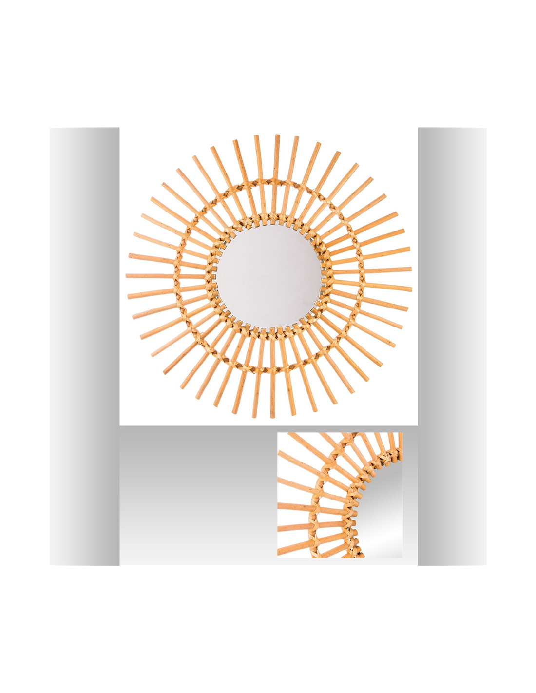 Ce miroir soleil en rotin est l'accessoire essentiel, esthétique et naturel, idéal pour une décoration soignée.