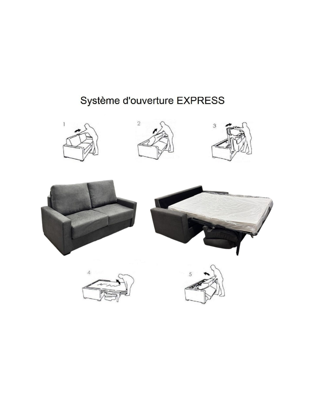 Caractéristiques générales du canapé lit : - Structure en pin massif de Galice. - Densité du canapé : 30 kg. - Garnissage : 50% fibres, 50% mousse. - Système d'ouverture italien. - Pieds en bois. - Tissu dino 1. - Matelas de 18 cm de hauteur, densité 35 kg.