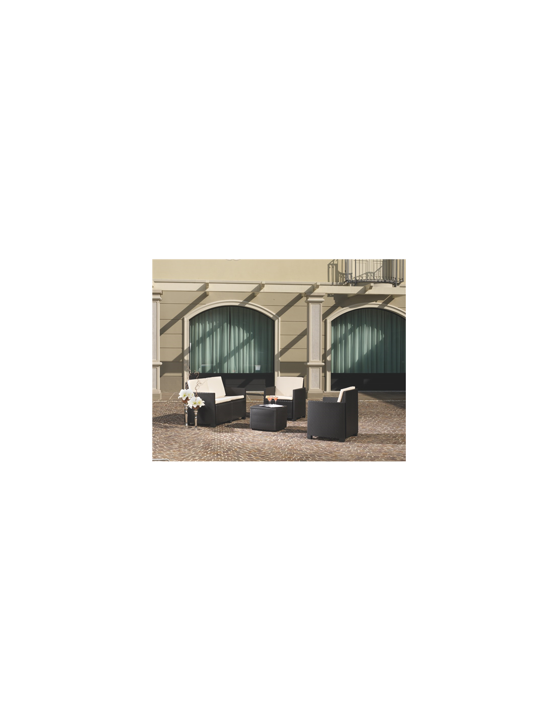 Le salon de jardin dispose d'un canapé et deux fauteuils autour de la table basse et s'adapte à toutes les situations.