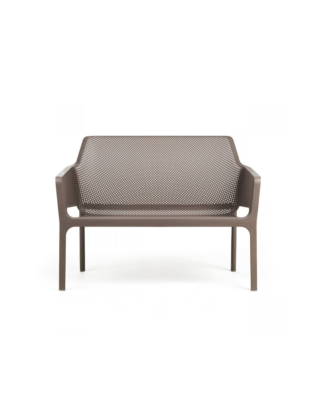 Banc monobloc. Matériau: polypropylène fiberglass traité anti-UV et coloré dans la masse. Effet mat. Avec patins anti-dérapants. Coussin disponible sur commande VENDU A PART Résine recyclable. Largeur : 116 cm Profondeur : 70cm Hauteur de l'assise : 42cm Hauteur : 86cm