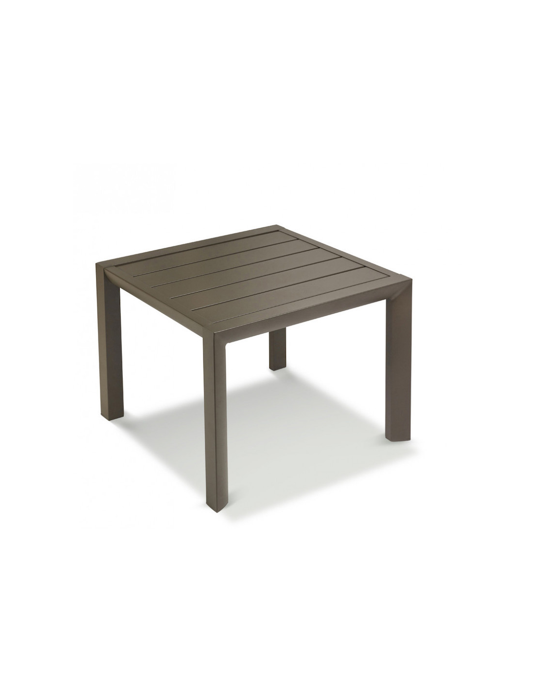 Une table basse en aluminium laqué, à lattes, qui complète parfaitement, par son côté pratique, la gamme de bain de soleil Sunset.