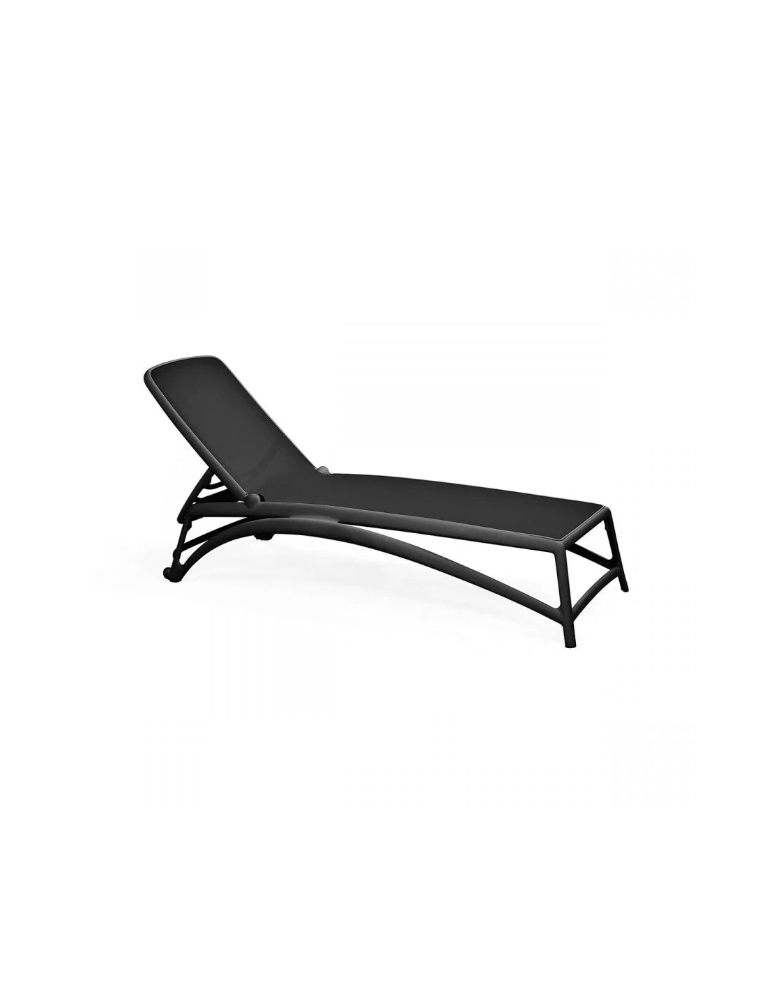 Formes ergonomiques qui s’ajustent de façon uniforme et élastique au poids, et design aérodynamique pour Atlantico, bain de soleil doté d’une structure en résine fibre de verre et d’un tissu respirant et amovible.