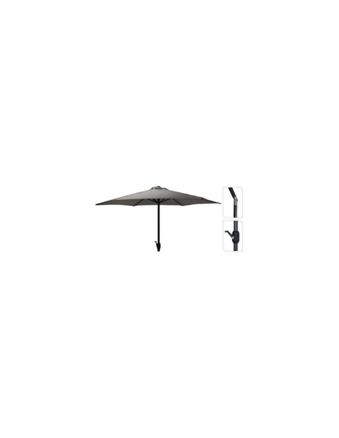 PARASOL 2.7 M ANTHRACITE INCLINABLE MAT ALUMINIUM DIA 38MM, 6 BALEINES EN ACIER 18X12MM, AVEC MANIVELLE, AVEC WINDCATCHER, AVEC INCLINAISON, TISSU 160 GRAMM2 POLYESTER CHACUN EN POLY-BAG