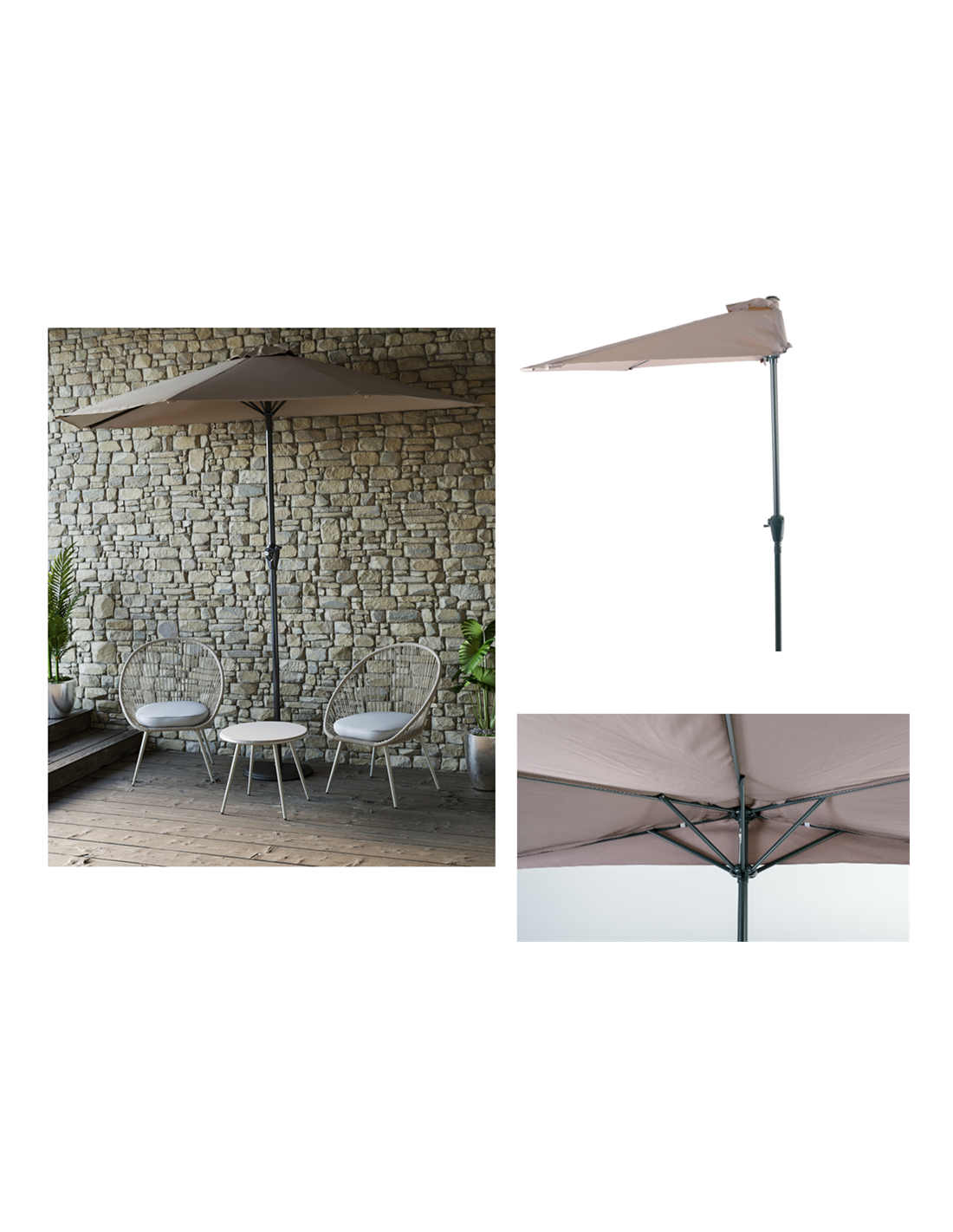 PARASOL BALCON 2.7M - MAT EN ALUMINIUM EPOXY D.38X0.8MM - 5 BALEINES EN ACIER 12X18MM - POLYESTER 160G/M2 - OUVERTURE PAR MANIVELLE PLASTIQUE - CHEMINEE AERATION