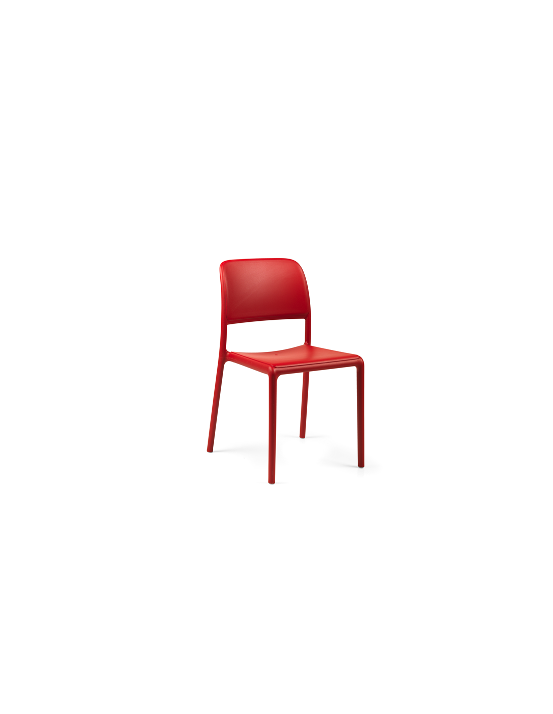 Chaise monobloc sans accoudoirs. Matériau: polypropylène fiberglass traité anti-UV et coloré dans la masse. Effet mat. Avec patins anti-dérapants. Résine recyclable. Hauteur dossier 83 cm Hauteur assise 46,5 cm Largeur 49 cm Profondeur 54 cm