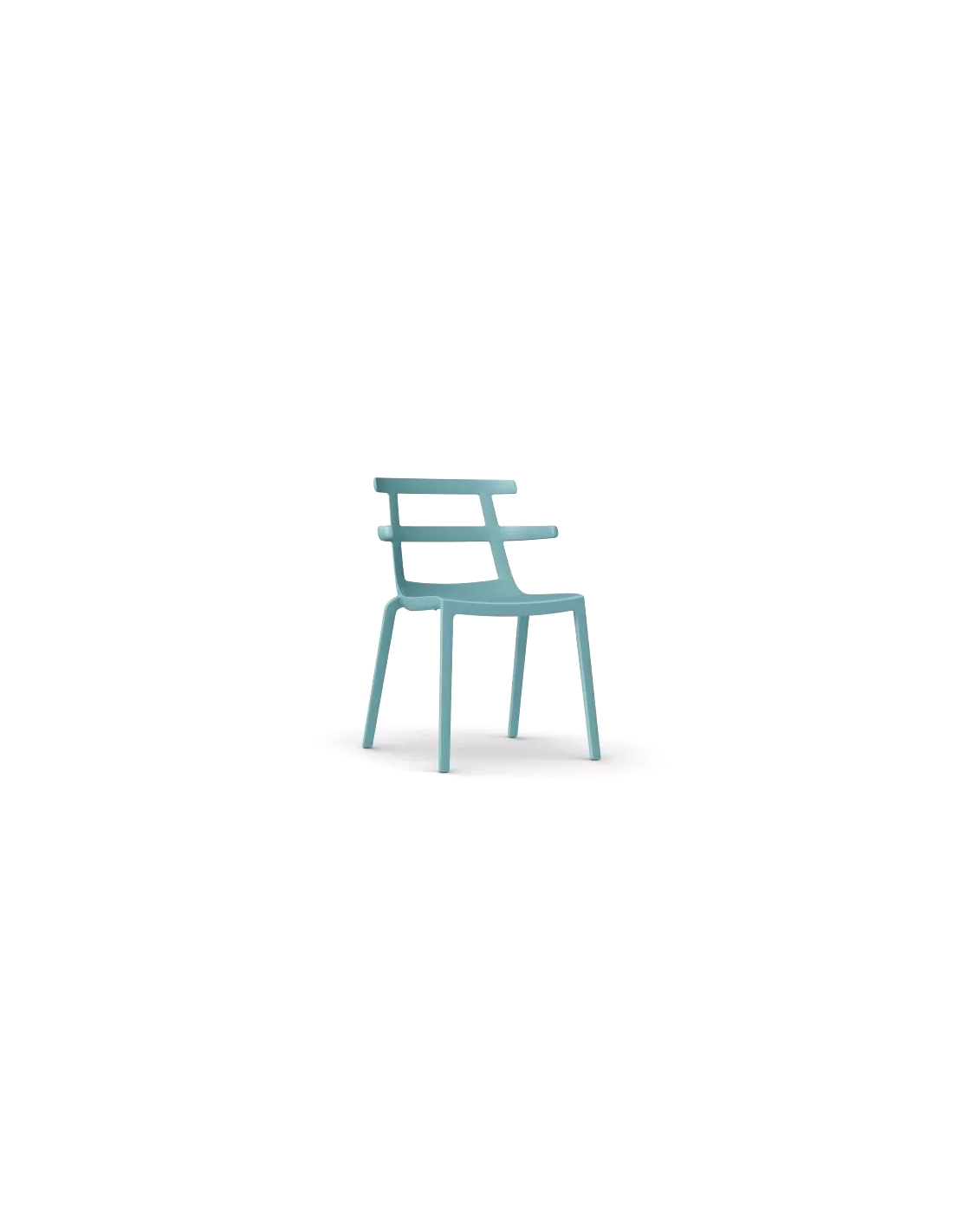 Fauteuil pour usage intérieur et extérieur. Produit en une seule pièce de polypropylène injecté avec fibre de verre en utilisant technologie de moulage assistée par gaz . Empilable. Dimensions 76 x 55 x 56 cm