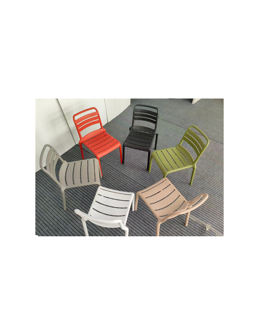 CHAISE DE JARDIN CADRE EN PP AVEC LAMES EN PP SUR L'ASSISE ET LE DOSSIER, LA COULEUR DU MATÉRIAU PP EST RÉSISTANTE AUX UV, TAILLE DE LA CHAISE 59X58XH83CM,