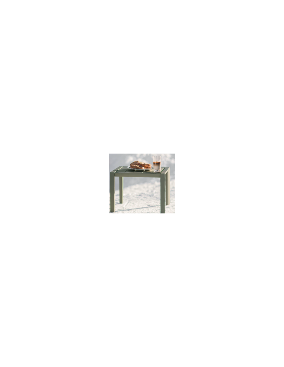Une table basse en aluminium laqué, à lattes, qui complète parfaitement, par son côté pratique, la gamme de bain de soleil Sunset.