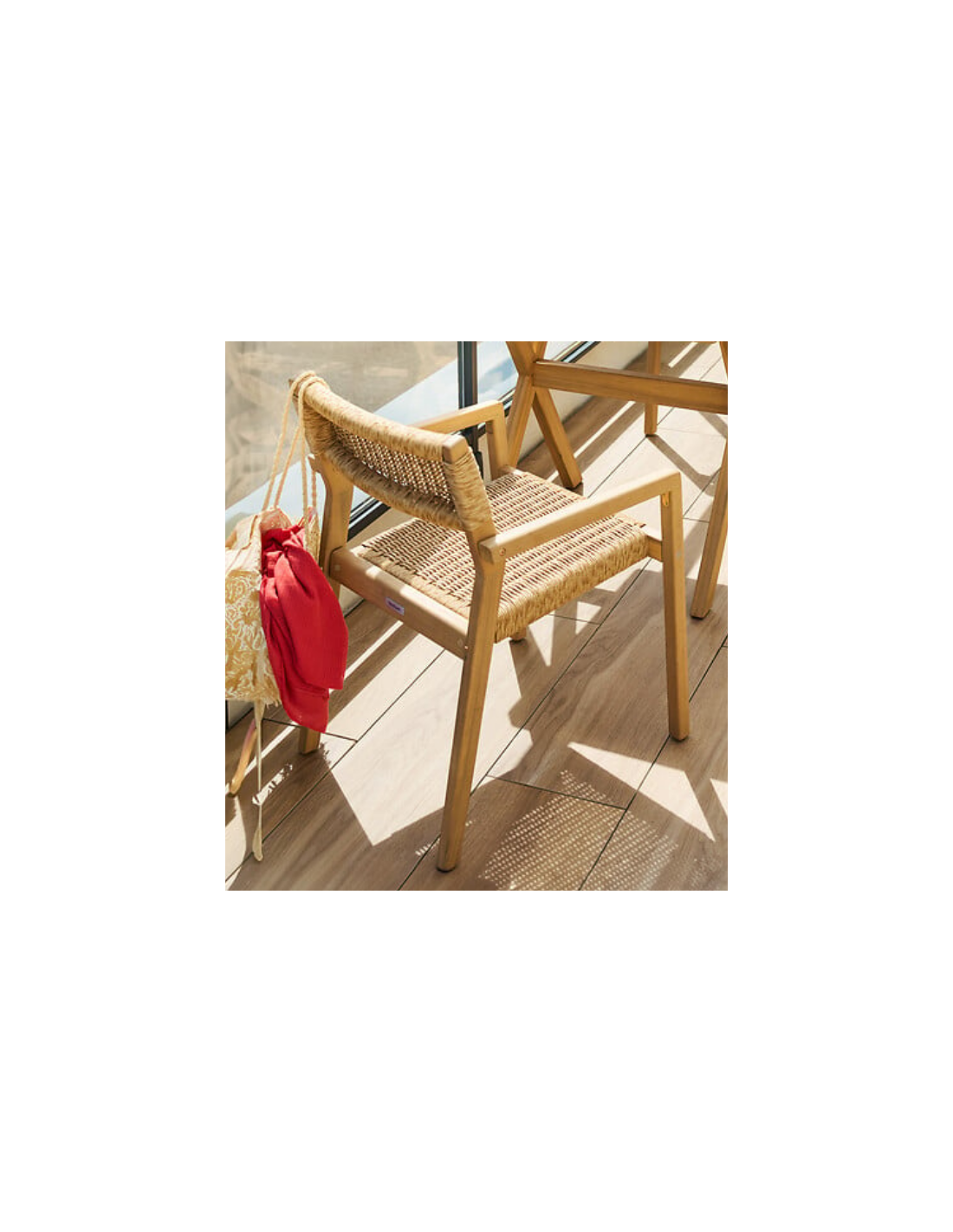 Bois FSC, protégé par un vernis. Assise et dossier en polyrattan À monter soi-même : Oui Empilable : Oui Traitement déperlant : Non Public : Adultes Usage : Extérieur Poids max autorisé par personne : 110 KILOGRAM