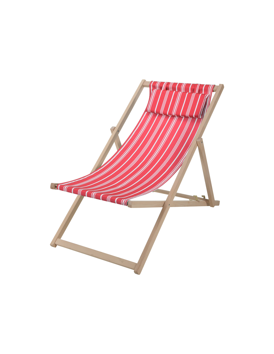 CHAISE LONGUE EN BOIS À MOTIF RAYÉ ROUGE CHAISE PLIANTE EN HÊTRE, AVEC TISSU À MOTIF RAYÉ DE COULEUR ROUGE. DIMENSIONS : 97X56X85CM. POSITIONS RÉGLABLES POIDS MAXIMAL 110 KG