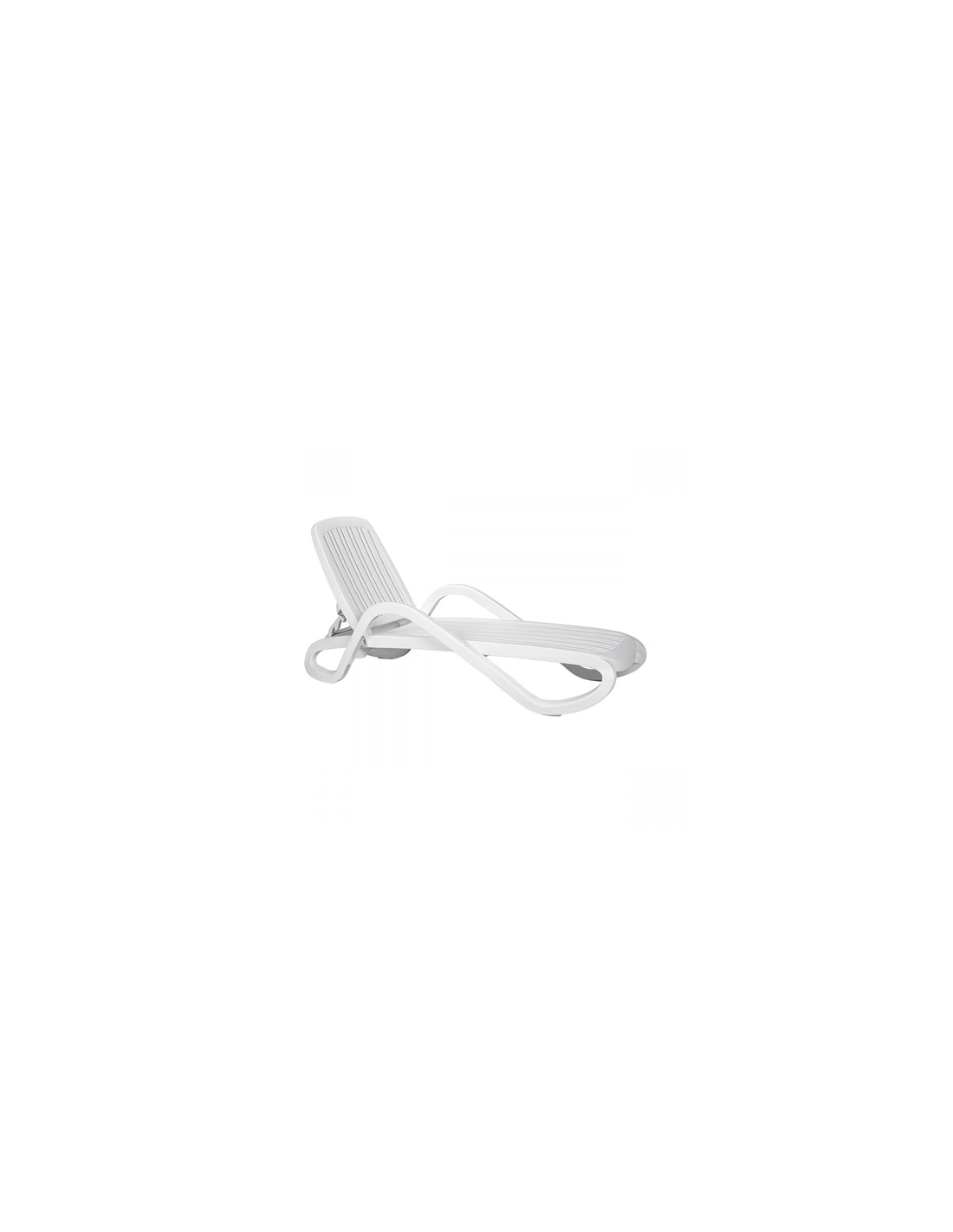 Bain de soleil avec accoudoirs en résine, pouvant être doté d’un parasol, à dossier inclinable dans quatre positions différentes.