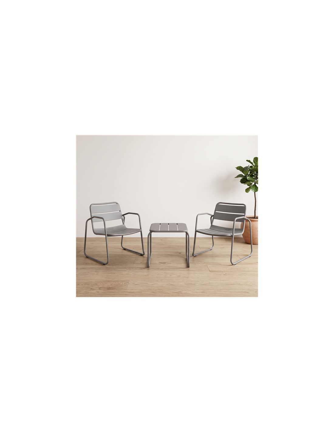 SALON KOP - 2 FAUTEUILS - 1 TABLE BASSE - COULEUR METAL GRIS - SANDA