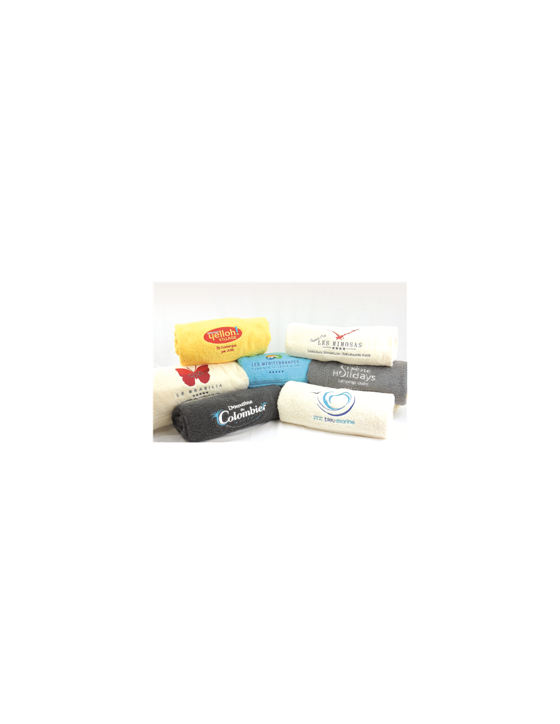 Personnalisez selon vos couleurs un linge brodé et personnalisé avec votre propre logo disponible en plusieurs couleurs.