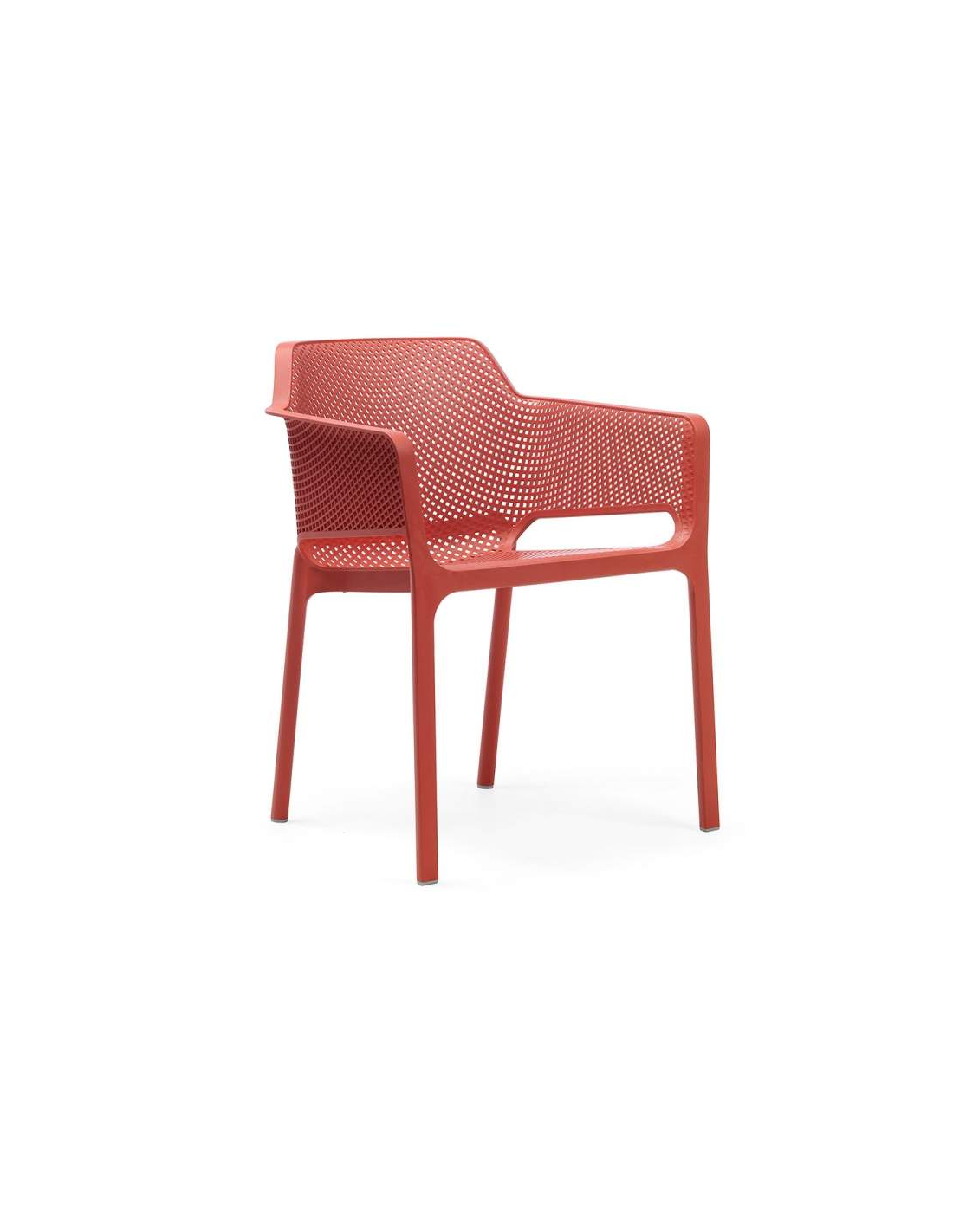 Fauteuil monobloc. Polypropylène fiberglass traité anti-UV et coloré dans la masse. Effet mat. Avec patins anti-dérapants. Coussin disponible sur commande. Résine recyclable. Hauteur dossier 80 cm Hauteur assise 46,5 cm Largeur 60,5 cm Profondeur 58,5 cm