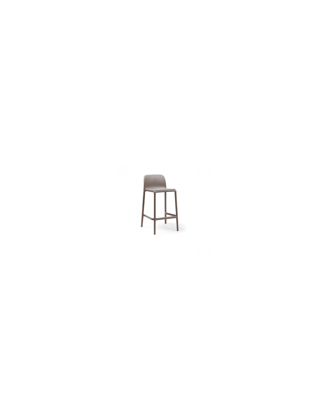 Tabouret monobloc. Matériau: polypropylène fiberglass traité anti-UV et coloré dans la masse. Effet mat. Avec patins anti-dérapants. Hauteur assise 65 cm. Résine recyclable.