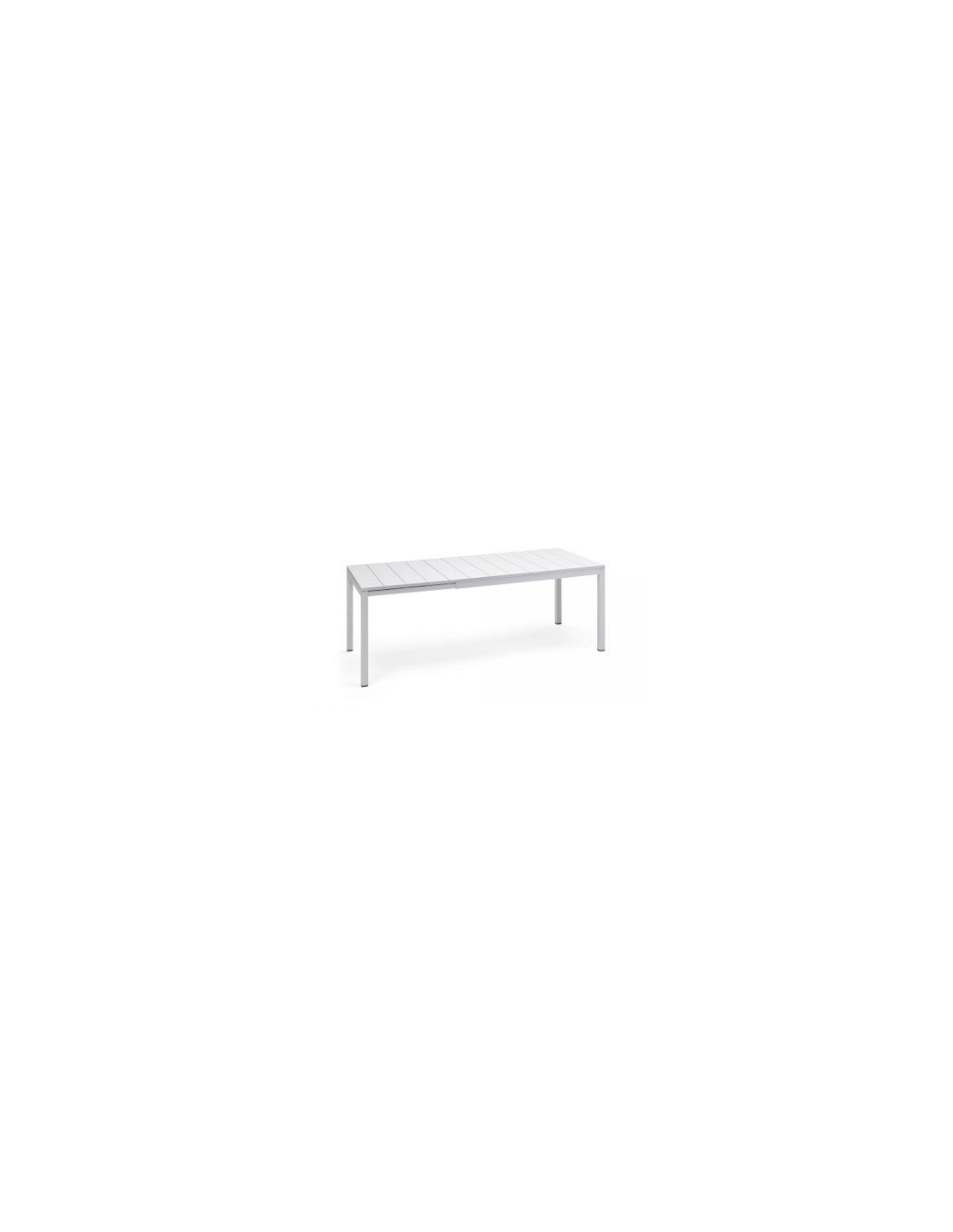 Table extensible. Matériau: plateau DurelTOP en polypropylène traité anti-UV et coloré dans la masse. Pieds en aluminium vernis. Effet mat. Vérins de réglage. 140 - 210 x 85 x 76h cm. Résine recyclable.